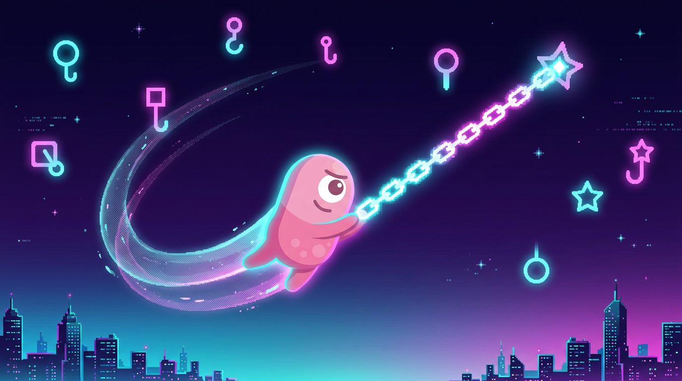 Физический аркадный маятник — цепляйся и раскачивайся в Telegram.